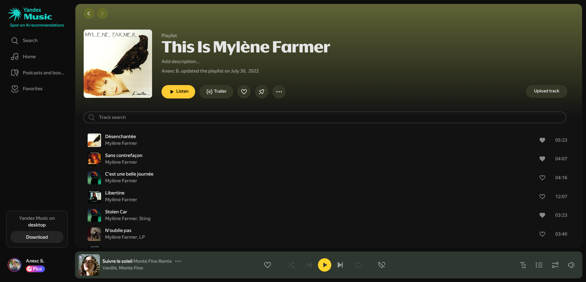 Итак, заходим в наш плейлист, убеждаемся, что он публичный. Вот, например, мой плейлист с ссылкой https://music.yandex.ru/playlists/cc4ece5f-2c41-0b27-96a5-b6a620d1df18.