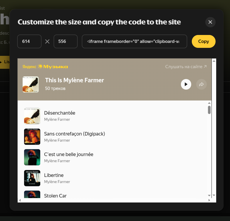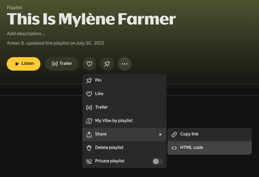 Инструкция: где найти HTML-код для экспорта плейлиста Яндекс Музыки